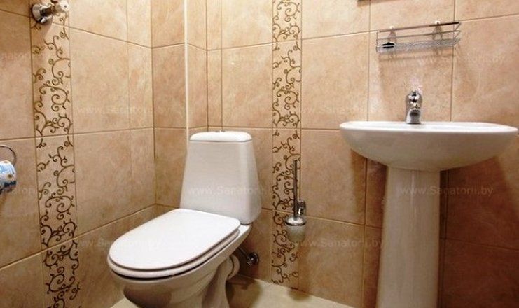 Санузел: душ, раковина, унитаз, туалетные принадлежности, фен
